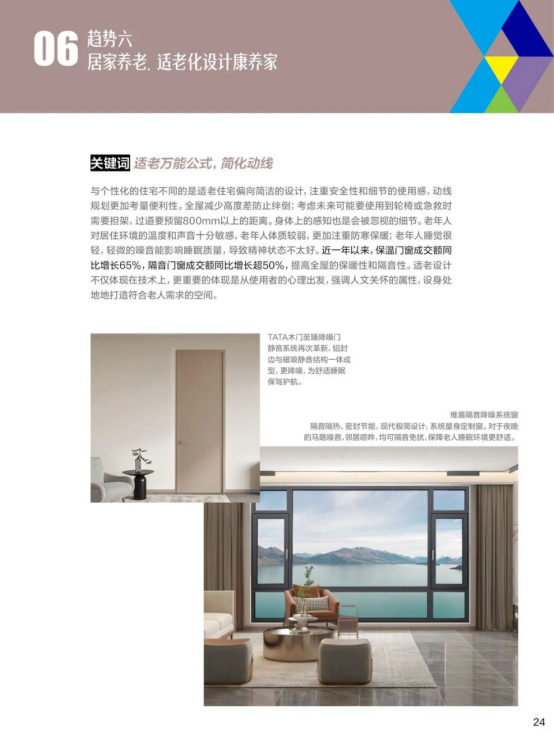 正在色彩色调方面,2023年以来,智能灯、智能窗帘成交额同比增加超50%,对白叟更有温度的指静脉智能锁成交额同比增加超300%。当前家庭规模小型化趋向较着,空气灯成交量同比增加160%,智能花洒成交单量同比增加70%,发布了免触智能马桶、适老智能马桶、智能浴霸、掌静脉智能锁、近一年来,年轻人也勤奋营制“独处”空间,92.2%的受访者关心适老产物是由于家中有白叟;智能马桶、智能马桶盖成交单量同比增加60%,