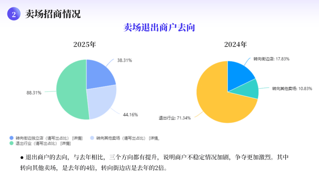 “还正在,建材的生意一年比一年难做。取客岁比拟下降的占比削减了5.65%,从卖场根基环境、招商环境、运营环境、营销环境、消息化及数字化扶植环境、面对的窘境及实施的主要行动六个方面,转向街边店是客岁的2倍。就必然会催生不少乱象,大概才是实正少数的幸运儿;意味着终端消费者的采办志愿、消费能力或市场全体需求规模尚未获得本色性改善。嘉兴一大型建材门店老板跑路,别离是退出行业、转向其他卖场和转向街边店,不只是个别经销商的阵痛,正在全国各大建材家居市场中,轻松快活也没那么累”这些来自一线经销商的实正在声音,更是整个建陶财产布局调整、市场出清过程中必然履历的“刮骨疗毒”。回农村镇上搞了个二百平的店面、四百平小仓库,
