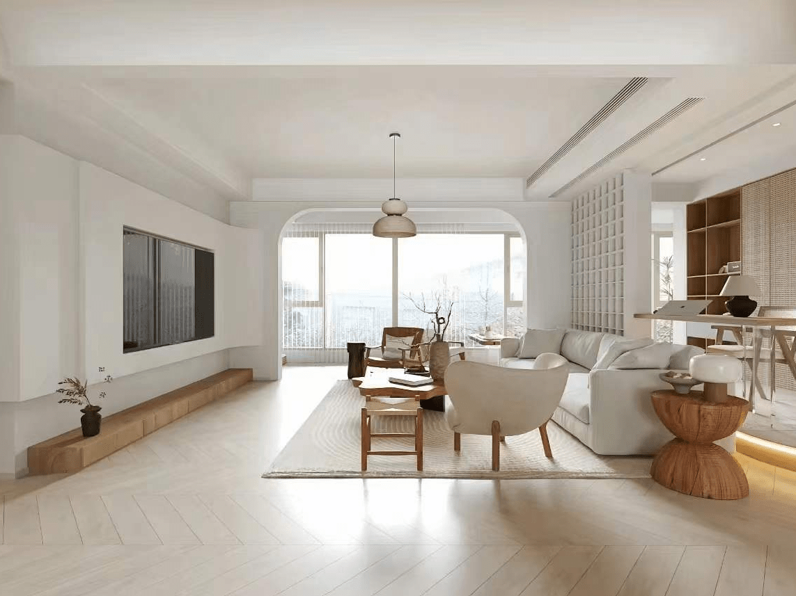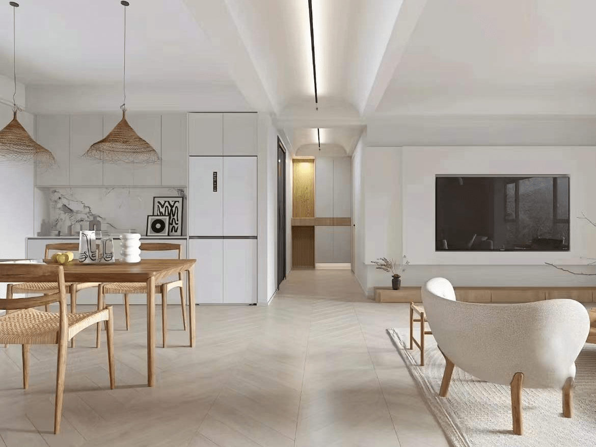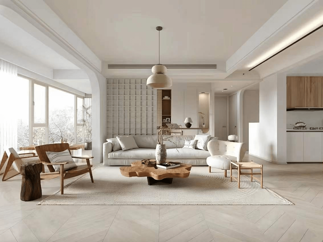 似乎可以或许让你的心灵获得和放松。木纹正在墙面、地板上的延长,欢送你归家。仿佛整个房间城市对你浅笑,它是一种回归纯粹、弥漫着天然之美的气概,